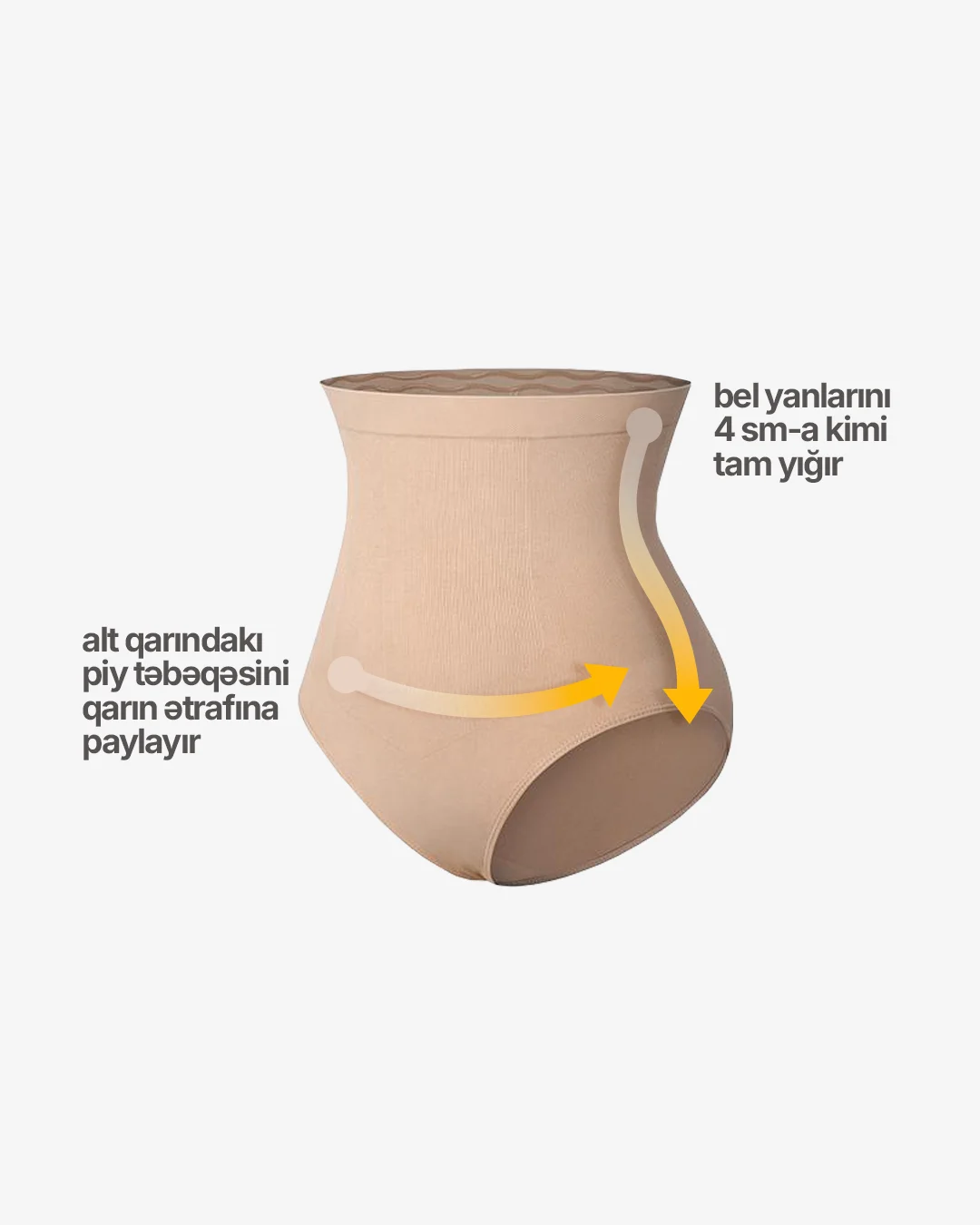 • Qarını vizual olaraq 1 bədən ölçüsü daha incə göstərir.